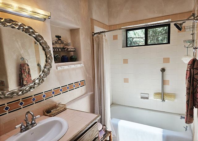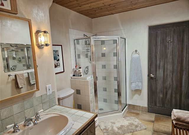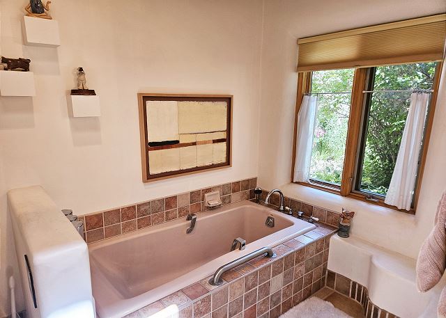 All guests have access to the five acre property, including landscaped grounds and private forest trail, but not the separate patios and private porches adjacent to the main house or casita. The hot tub is available only to the "main house" guests.