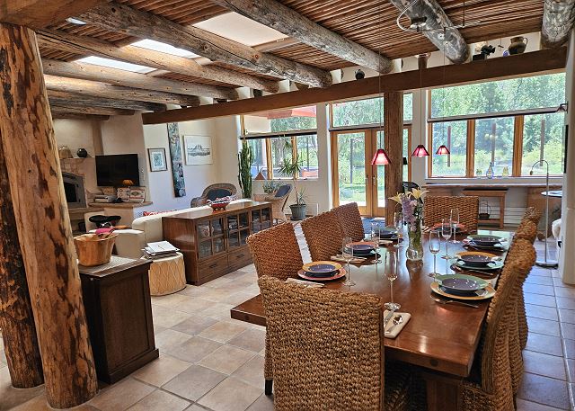 This beautifully appointed property just 5 miles from the Taos Town Plaza is a great vacation destination for all season. Nestled on 5 acres. Enjoy the privacy of the location. Main house sleeps 6 while adding the Casita will accommodate 10.