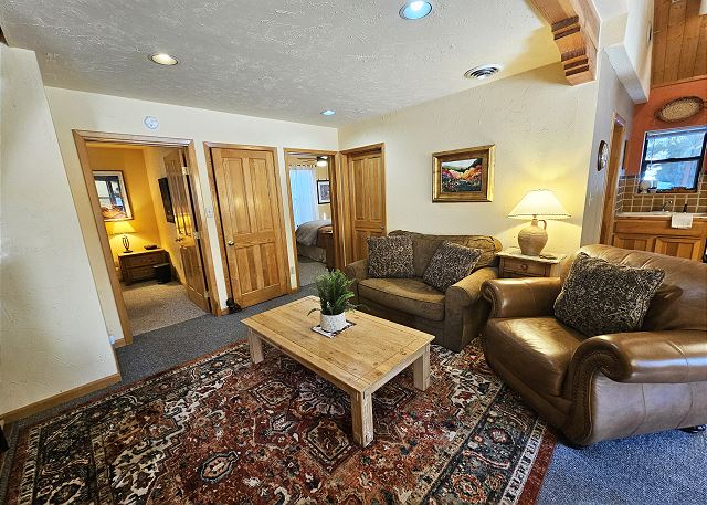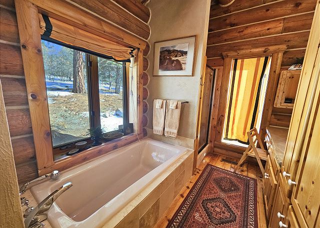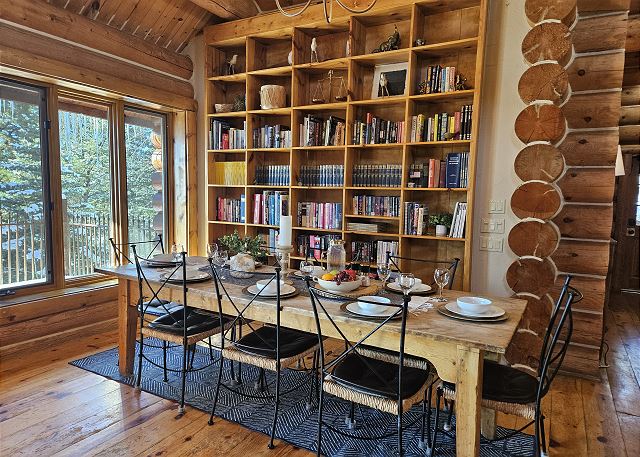 Private setting on 3 aspen and pine forest acres. 3 separate vacation homes sleeping 18 guests. The log home, guest house and cabin. 3 kitchens, 3 living rooms 7.5 bedrooms including 2 lofts, 2 private hot tubs, Wi-Fi