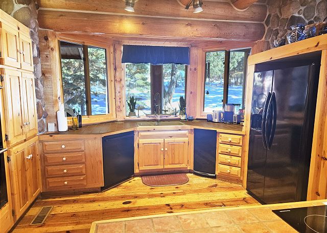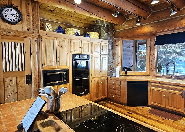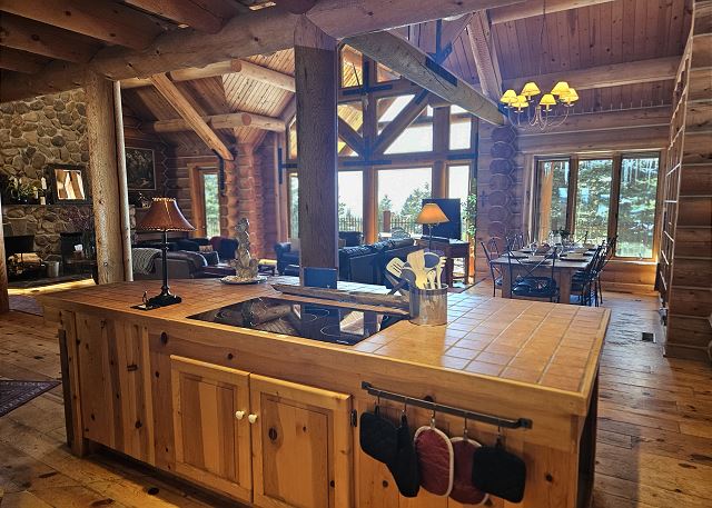 The guest house proximity to the log home makes it a perfect separation for children and teens to have their own space to watch big screen TV and play table games for day time and early evening recreation. Two hot tubs means most everyone who wants to soak will find hot tub space at any given time. The luxury of 3 kitchens means that separate families can separately prepare food and convene for group meals. A piano in in place as an added attraction for groups - there is always someone who plays the piano and always many who love to sing along with a piano player.