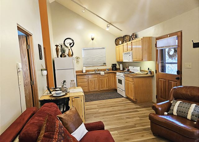 Perfect mountain getaway! The cabin was even more rustic and beautiful than the pictures show. It was an ideal location! We had half of our group wanting to ski and the other half more interested in local shopping, attractions and sightseeing. So the location in Arroyo Seco was perfect! The driveway is steep - if it has been snowing - you will need an all wheel drive as the description says. The sights from the great room are breathtaking! Hannah, the local contact person was friendly, prompt to respond and very helpful! We will definitely be returning!!! - A.S.